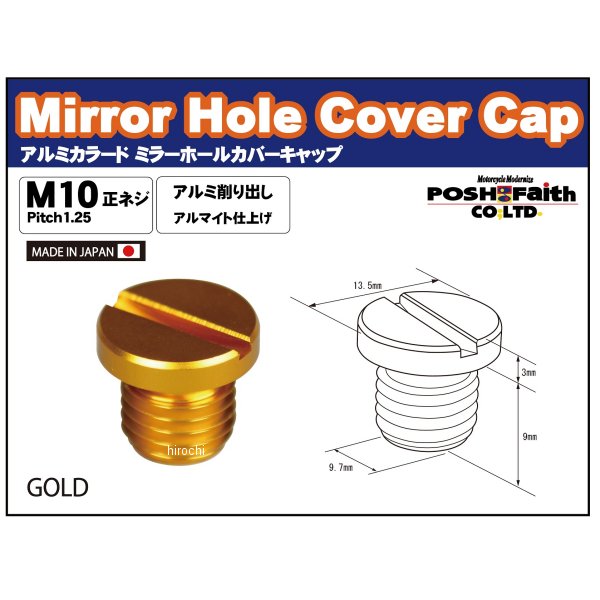 ポッシュ POSH ミラーホールカバーキャップ汎用ミラーホールキャップタイプ:10mmカラー:ゴールド用途:ミラー穴埋めキャップで使用しないミラーホールの保護に内容:ミラーホールカバーキャップ1個入り