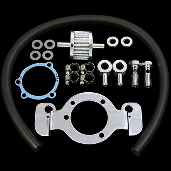 91年以降 XL素材:スチール07年式以降のインジェクション車には付属のサポートブラケットは使用しません。また、使用するエアクリーナーによっては、スロットルボディブラケットのスクリューがエアクリーナーのバッキングプレートに干渉する恐れがありますのでスペーサーをご用意下さい。