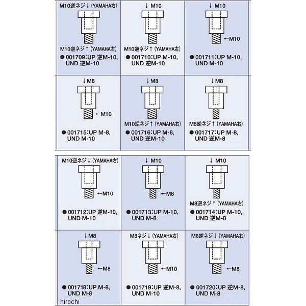 ポッシュ POSH汎用上逆M8,下M81PSバックミラーがネジ径の違いで、取り付きかない時にご使用ください。