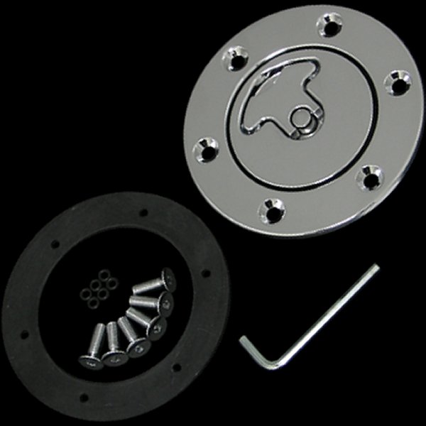 外径:約94mm 給油口:約45mmカラー:クローム素材:スチール【セット内容】キャップ本体×1個 ガスケット×1枚固定用ボルト×6本 ボルト用O-リング×6枚取り付けにはガスタンクの大幅な加工が必要です。取り付けは技術のあるカスタムショップへご依頼ください。新品装着時、タンク相性により渋い場合がございますので、ラバーシール破損を防ぐためにシリコングリスやスプレー等で潤滑して下さい。