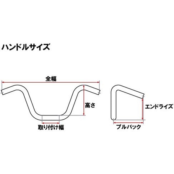 1インチバー採用のほとんどのハーレー※FXSTS、FLSTSは取り付け幅が合わない為、取り付け不可。全幅:約510mm高さ:約240mmプルバック:約320mmエンドライズ:約230mm取り付け幅:約125mm素材:スチール電子制御スロットル採用モデルに使用する際は加工が必要になります。