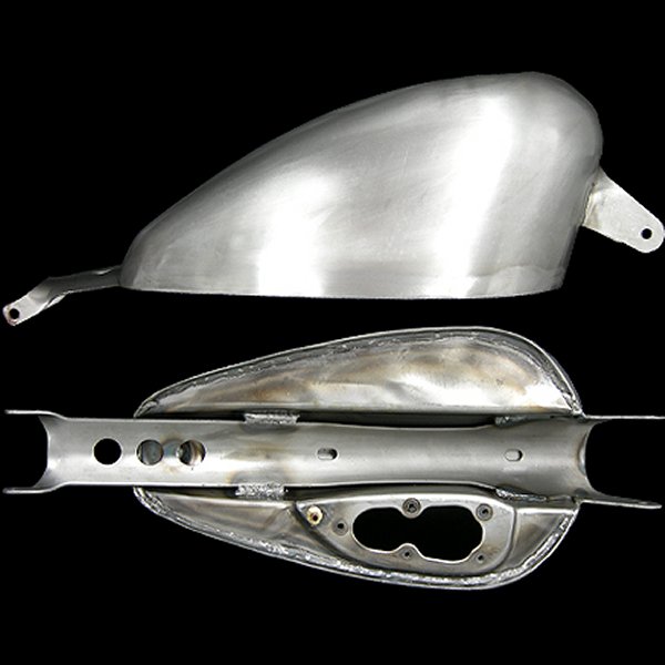 07年以降のインジェクションモデルのスポーツスターに適合容量:約7.9リットル 長さ:約400mm(ブラケット含まず) 幅:約240mm 高さ:約200mmトンネル(下のえぐれてる所)幅:約85mm 深さ(最大):約125mmフロントステー長さ:約85mm リアステー長さ:約110mmカラー:素地(未塗装)素材:スチール【セット内容】ガスタンク本体のみ対応純正品番:61724-10塗装の前にフィッティング、ガス漏れの確認を行ってください。フューエルポンプユニットは非常にデリケートです。脱着作業はサービスマニュアルに従い、細心の注意を払ってください。ベントラインは適宜ご用意下さい。インジェクション用のガスタンクですので、キャブ仕様の車輌に使用する際は大幅な加工が必要になります。純正のガスキャップを利用の際、若干収まりが悪い場合がございます。気になる場合は当店のスクリュータイプガスキャップをご利用ください。内容量表記(ガロン)は目安となっております。車体にマウント後、実際に使える容量は表記より低くなる場合がございます。