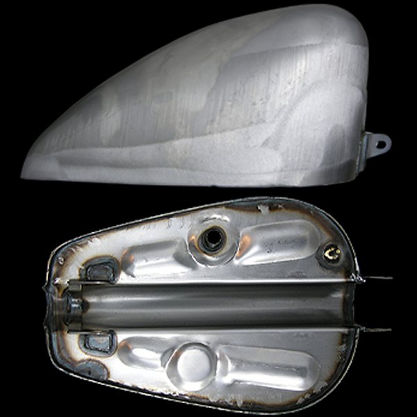 93年-94年のスポーツスター長さ約400mm(ブラケット含まず) 幅約275mm 高さ約200mmトンネル(下のえぐれてる所)幅約55mm 深さ最大約105mm、最小約15mmガスコックサイズは13/16ナットコネクションカラー:素地(未塗装)素材:スチール【セット内容】ガスタンク本体×1個 マウントキット×1セットガスキャップはスクリュータイプ右のみ適合です。塗装の前にフィッティング、ガス漏れの確認を行ってください。内容量表記(ガロン)は目安となっております。車体にマウント後、実際に使える容量は表記より低くなる場合がございます。