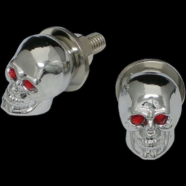 ボディー:クローム目:レッド(グラス)素材:プラスチック&スチール【セット内容】スカル本体×2個 芋ネジ×2本ワッシャー×4枚 スプリングワッシャー×2個ナット×2個