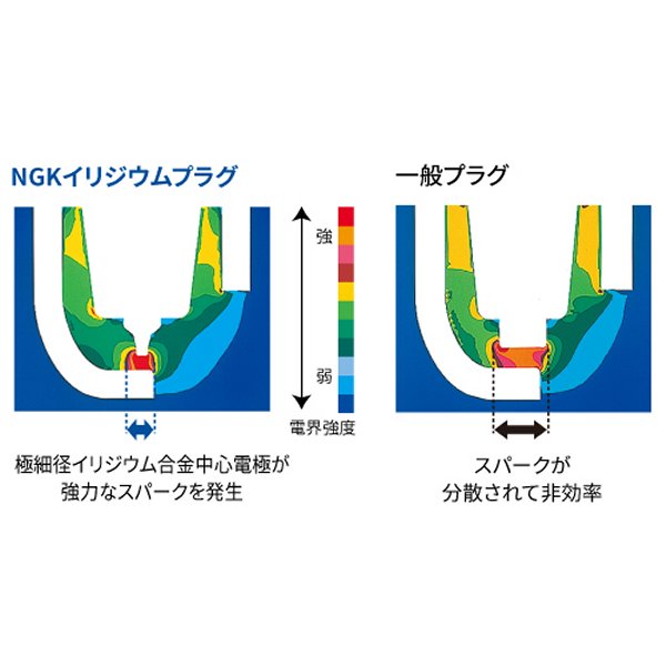 NGK イリジウムMAXプラグネジ径:14mmネジ長:19mm六角対辺:16mm熱価:6端子形状:一体形主な用途:四輪車【特長・構造】イリジウムIXプラグの性能をそのままに、ロングライフを実現。中心電極にイリジウム合金、外側電極に白金合金と、両電極に貴金属を採用。イリジウムIXプラグの着火性、燃費向上に加え、耐久性が向上したプラグです。・燃費アップ抜群の燃費性能。お財布にも環境にもやさしく。イリジウムプラグは一般プラグに比べ着火性が良く抜群の燃費効率により燃費向上。・くすぶりに強いサーモエッジはNGKスパークプラグだけ。汚れにくいから高性能が持続。微小放電が生まれるサーモエッジを絶縁体先端部分に設計。長時間の低速走行によって絶縁体に付着したカーボンを微小放電で焼き切り、プラグの着火性能を常に高く維持します。・強力なスパーク極細径イリジウム合金中心電極が電界強度を改善し、低い電圧でより強力なスパークを発生します。・燃焼の安定スパークが中心電極の先端部に集中しますので常に安定した燃焼が得られ、燃費向上につながります。