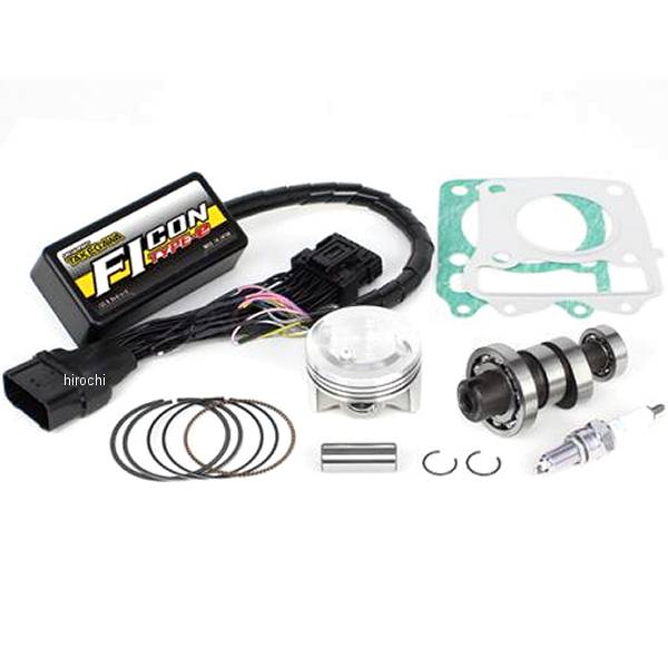 SP武川 ハイパーチューニングセットグロム(JC61)MSX125MSX125SF排気量は変えずにピストンとカムシャフトを交換し、FIコン TYPE-e(インジェクションコントローラー)を同時装着することで、出力アップが可能になるハイパーチューニングセットです。【ハイコンプピストンキット】最適なピストン形状と圧縮比のバランスにより、他のメーカーには無い高い出力性能を発揮します。排気量は変えず、ノーマルシリンダーヘッド、ノーマルシリンダーを使用し、ピストンを交換することで、出力アップが可能になります。ピストンの高圧縮比化、高効率燃焼化、低フリクション化を実現する為に細部にこだわり、最適なピストン形状を追求したピストンです。高圧縮比化に耐えうるように高剛性アルミ鍛造材を採用。ボア径52.4mm(ノーマルと同じボア径)圧縮比 ハイコンプピストン 12.5:1(ノーマルピストン 9.8:1)※ハイオクタン価ガソリン仕様となります。【スポーツカムシャフト(N-15)デコンプレス仕様】スポーツカムシャフト(N-15)はエントリーモデル用に開発されたカムシャフトです。ノーマルシリンダーヘッドの性能を引出す最適なプロファイルにより、出力性能が向上します。又、スポーツカムシャフト(N-15)には、オートデコンプレッション取付け構造が無い為、装着時、デコンプレッションレス仕様となります。【FIコン TYPE-e(インジェクションコントローラー】スポーツカムシャフトやマフラーパーツを取り付ける事で理想的な空燃比から大きく外れてしまう為、FIコンで燃料噴射時間を補正する必要があります。純正ECUのカプラーを取り外し接続するのみで取り付け可能。FIコン TYPE-eには武川製エンジンパーツに合わせ武川でセッティングしたデータを複数内蔵しておりますのでエンジン仕様に合わせてパソコン又はスマートフォンを用いて手軽にセッティングデータの選択、変更、修正を行えます。噴射時間の調整は増量最大5000μs、減量最大7500μsとなっておりノーマル排気量からボアアップ車両まで幅広くご利用頂けます。パソコン、スマートフォンを用いてエンジン回転数、エンジン温度、スロットル開度、インジェクター開閉率のモニタリング機能を搭載していますのでセッティング時にも非常に便利に使用して頂けます。【注意事項】ハイコンプピストンキットの装着により、エンジン出力、トルクが大幅にアップする為、クランクシャフトには、ねじれやたわみ等の負担が増加します。クランクシャフトの負担をを軽減させる為、クランクシャフトサポートアダプター(品番:01-10-0138)の同時装着をお薦めします。