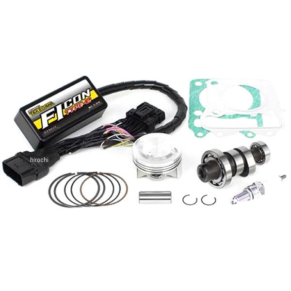 SP武川 ハイパーチューニングセットグロム(JC75-1000001-)排気量は変えずにピストンとカムシャフトを交換し、FIコン TYPE-e(インジェクションコントローラー)を同時装着することで、出力アップが可能になるハイパーチューニングセットです。【ハイコンプピストンキット】最適なピストン形状と圧縮比のバランスにより、他のメーカーには無い高い出力性能を発揮します。排気量は変えず、ノーマルシリンダーヘッド、ノーマルシリンダーを使用し、ピストンを交換することで、出力アップが可能になります。ピストンの高圧縮比化、高効率燃焼化、低フリクション化を実現する為に細部にこだわり、最適なピストン形状を追求したピストンです。高圧縮比化に耐えうるように高剛性アルミ鍛造材を採用。ボア径52.4mm(ノーマルと同じボア径)圧縮比 ハイコンプピストン 12.5:1(ノーマルピストン 9.8:1)※ハイオクタン価ガソリン仕様となります。【スポーツカムシャフト(N-15)デコンプレス仕様】スポーツカムシャフト(N-15)はエントリーモデル用に開発されたカムシャフトです。ノーマルシリンダーヘッドの性能を引出す最適なプロファイルにより、出力性能が向上します。又、スポーツカムシャフト(N-15)には、オートデコンプレッション取付け構造が無い為、装着時、デコンプレッションレス仕様となります。【FIコン TYPE-e(インジェクションコントローラー】スポーツカムシャフトやマフラーパーツを取り付ける事で理想的な空燃比から大きく外れてしまう為、FIコンで燃料噴射時間を補正する必要があります。純正ECUのカプラーを取り外し接続するのみで取り付け可能。FIコン TYPE-eには武川製エンジンパーツに合わせ武川でセッティングしたデータを複数内蔵しておりますのでエンジン仕様に合わせてパソコン又はスマートフォンを用いて手軽にセッティングデータの選択、変更、修正を行えます。噴射時間の調整は増量最大5000μs、減量最大7500μsとなっておりノーマル排気量からボアアップ車両まで幅広くご利用頂けます。パソコン、スマートフォンを用いてエンジン回転数、エンジン温度、スロットル開度、インジェクター開閉率のモニタリング機能を搭載していますのでセッティング時にも非常に便利に使用して頂けます。【注意事項】ハイコンプピストンキットの装着により、エンジン出力、トルクが大幅にアップする為、クランクシャフトには、ねじれやたわみ等の負担が増加します。クランクシャフトの負担をを軽減させる為、クランクシャフトサポートアダプター(品番:01-10-0138)の同時装着をお薦めします。