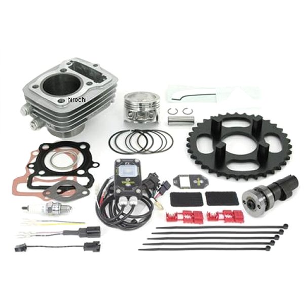 SP武川 ハイパーSステージ ボアアップキット 80cc08年-17年 ホンダ エイプ50【仕様】・ボア径:53.5mm・排気量:80cc・圧縮比:11.5対1重量:2400g※エイプ50FIに装着する場合、ECUステーキット(05-06-0003)、又は、SP武川製アルミ製バッテリーケース&電装パネルセット(05-06-0002)の同時装着が必要になります。※エイプ50FIタイプD (AC18-1000001-)にはホイールが異なり、ドリブンスプロケットの取付けが出来ない為、対象外になります。※FIコン2(インジェクションコントローラー)はSステージボアアップキット80cc装着車専用になります。ノーマルエンジン仕様車には使用出来ません。※H.I.D.及び他社製LEDヘッドライト類との同時装着は出来ません。社外品の点火装置は点火電圧アップに伴う、放射ノイズの増大により誤作動や製品故障の原因となりますので同時装着しないで下さい。ノーマルエンジンとは全く異なるエンジン出力とトルクフルな走りを実現する「ハイパーSステージボアアップキット」ハイパーSステージボアアップキットはSステージボアアップキット80ccに、排気量アップに伴う燃調の狂いを補正するFIコン2(インジェクションコントローラー)、減速比の変更を行えるドリブンスプロケット35T、スパークプラグ(NGK-CR8HSA)が付属しています。オプショナルパーツのエアフィルター、マフラーを同時装着することで、更に出力アップが可能になります。・Sステージボアアップキット80cc詳細ノーマルシリンダーヘッドを使用し、シリンダーとピストンの変更で排気量を80ccに出来ます。シリンダーにはオイル取出し口を備え、オイルクーラーへのオイル取出しが行えます。又、シリンダー本体にSP武川オリジナルスティック温度センサーの取り付けが可能な為、SP武川製コンパクトLCDサーモメーター スティック温度センサー付きキットをご購入頂くことで、シリンダー温度を計測出来ます。シリンダーのオイル取出し口に使用されているオイルプラグボルトにもM5温度センサーの取付けが可能な為、オイル取出しを行わない場合、SP武川製コンパクトLCDサーモメーター M5温度センサー付きキットをご購入頂くことで、温度を計測することが出来ます。・スポーツカムシャフトノーマルシリンダーヘッドの性能を最大限に引き出す最適なカムプロファイルを追求したカムシャフトです。・FIコン2(インジェクションコントローラー)詳細煩わしいPC接続などは必要が無く、本体のロータリースイッチの切替えにより、簡単に設定変更が出来るSP武川独自開発のインジェクションコントローラーです。コンパクトボディーながら、SP武川製Sステージボアアップキットに合わせたセッティング済み3次元補正マップを内蔵しています。又、内蔵の補正マップを全体的に濃い目・薄い目に本体のロータリースイッチで微調整出来る増減機能も備えています。レブリミット回転数も、純正ECUを上回る約11500rpmとなります。車種別専用ハーネスを付属してありますので、最小限の配線加工で取付けが可能です。・SP武川製エアフィルターの同時装着がお薦めです。フィルターはノーマルエアクリーナーボックスを外し取付けるだけで吸入効率が大幅に向上し、高回転域での出力アップが可能になります。又、SP武川製マフラーと同時装着する事で更に出力アップが可能になります。フィルターのタイプはスタンダードとハイフローの2種類からお選び頂けます。ハイフローフィルターはスポンジ二重構造で、洗浄することも可能です。