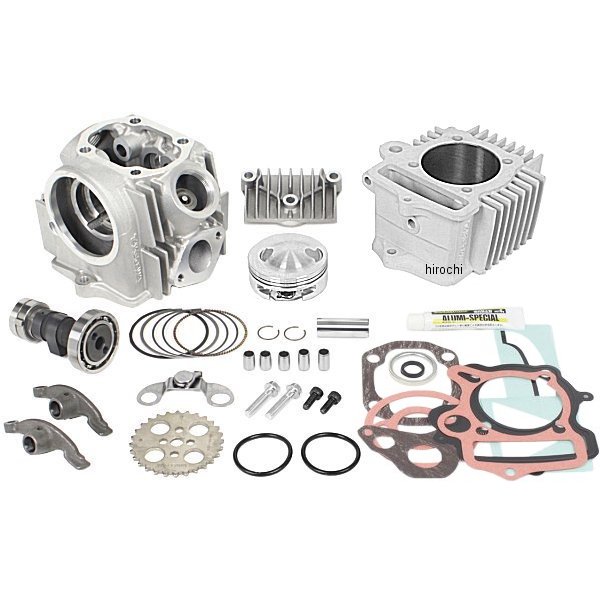 SP武川 17Rステージ+D ボアアップキット 113ccCD90(HA03-1100005~)スーパーカブ90(HA02-1800001~)カブ100EX(HA05-0000037~0002036/HA05-1000002~/HA06-0000001~)規格:カブ90/CD90エンジン用(Hシリンダー/R15E)従来のRステージ+Dからポートやフィン形状の改良を行い、新プロファイルのカムシャフトを採用することで更に高回転域の出力アップを実現した、CD90、スーパーカブ90、カブ100EX 各エンジン用“17Rステージ+Dボアアップキット”です。オートデコンプレッションカムシャフトの採用により圧縮が高くなったエンジンでも軽いキックの力でエンジン始動が可能です。【17Rステージ+Dシリンダーヘッド】・ノーマルヘッド形状をベースに大径バルブ インテーク:26mm/エキゾースト:22.5mm を採用(12Vモンキーノーマルバルブ径はインテーク:19mm/エキゾースト:16mm)・大径バルブに併せて、最適なバルブ挟み角、燃焼室形状、ポート形状を採用した弊社オリジナルのシリンダーヘッドです。・ノーマルヘッドのポート径は、インテーク/エキゾースト共に14mmであるのに対し、17Rステージのポート径はインテーク:24.5mm/エキゾースト:19mmと大径化。又、3次元ポート形状を採用し、バルブ・ポートの大径化と相まって、より多くの吸排気ガスをスムーズに流す事を可能としています。・バルブ:(インテーク26mm/エキゾースト22.5mm バルブステムシャフト径4.5mm)・バルブの大径化により、増加する重量をステムシャフトの細軸化とウエスト加工により、最小限の重量増加に留めています。・バルブスプリング:最適なスプリングレートの不等ピッチ(2段ピッチ)シングルバルブスプリングを採用し、高回転時のサージングを抑えます。【オートデコンプレッションカムシャフト】・オートデコンプレッション機能:高圧縮、排気量アップエンジン車でも、軽いキック力でエンジン始動が可能・カムシャフトはR-10E / R-15E / R-20Eの3種類あり、使用用途に合わせて交換し、走行性能を楽しむことが出来ます。・キット付属カムシャフト:R-15E【113cc用φ54HAシリンダー(オールアルミ製セラミックメッキシリンダー)】・カブ系エンジン純正シリンダーと外観上は同デザイン(シリンダーの高さは異なる)です。113cc用HAシリンダーにはセラミックメッキを施しており、耐久性、気密性、放熱性に優れております。・シリンダー側面にはM5温度センサーの接続が可能となり、別途弊社製コンパクトLCDメーター(M5温度センサー付き)、又はサーモメーターのセンサー部分をM5温度センサーに変更することでシリンダー温度の計測が出来ます。【ピストン】・ピストンはスカート部に初期馴染みを良好にするモリブデンコートが施されています。