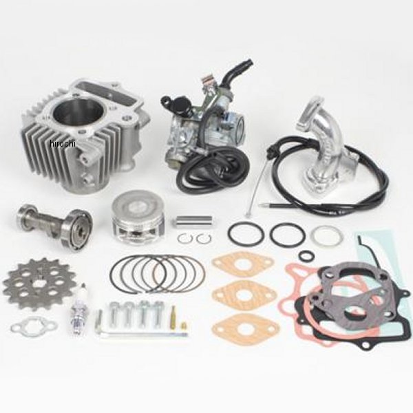 SP武川 ハイパーSステージ ボアアップキット Lスーパーカブ50(C.D.I.点火車両)但し、C50-8000026-8985028の車両、インジェクション車は除く、C50-9000001-0095210、C50-0200001-0999999、C50-2100001-2299999、AA01-1000001-1699999、リトルカブ インジェクション車は除く、C50-4300001-/AA01-3000001-3999999 【仕様】・88cc・ボア径52mm・圧縮比11.5:1・φ52Hシリンダー・付属カムシャフト:スポーツカムシャフト(オートデコンプレッション機能無し)※スポーツカムシャフトにはオートデコンプレッション機能はありません。※ジェットニードルのクリップポジション調整は出来ません。固定になります。 自分で簡単に組付け出来るボアアップキットです。ストリート走行に人気のライトボアアップキットで、ノーマルとは違ったエンジン性能が体感出来ます。Sステージはノーマルシリンダーヘッドとクランクシャフトのまま排気量アップが行えます。スカットシリーズはクランクケース分解作業の必要も無く、ノーマルクランクシャフトのままで大幅な排気量アップが可能なボアアップキットです。特許取得構造ハイパーSステージはSステージにキャブレターキット、スパークプラグ、出力向上に伴い、減速比の変更を行うドライブスプロケットが付属しています。・φ52Hシリンダー/ピストンボア径52mmφ52Hシリンダーはカブ系エンジンオリジナルシリンダーと外観上は同デザインを採用。シリンダーには温度センサー取付け部を標準装備。SP武川製サーモメーター内蔵メーター、又はサーモメーターをご購入頂くことでシリンダー温度を計測することが出来ます。φ52Hシリンダー:M5温度センサー鋳造ピストンを採用。ピストンスカート部には初期馴染みを良好にする為、モリブデンコートを施しています。・ケーヒン PB16キャブレターキットキットには、キャブレターから燃焼室まで抵抗無くスムーズな吸入を可能とするマニホールドが付属しております。