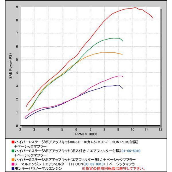 SP武川 Sステージボアアップキット88cc(オイル取出しボス付き)モンキー (FI) AB27-1900001-に適合■ノーマルスタイルを維持し、ボアアップシリンダーを装着するだけでオイルクーラーの取付けを可能。ブラインドプラグが装着されておりますので、オイル取り出しを行わない場合でもボアアップシリンダーとしてそのまま使用可能シリンダー本体は、耐久性、気密性、放熱性に優れたオールアルミ製セラミックメッキシリンダーを採用。■ノーマルシリンダーヘッドをそのまま使用し、シリンダー、ピストンを交換することで排気量を88ccにすることが出来ます。又、ノーマルカムシャフトからキットに付属する武川社製スポーツカムシャフトを装着する為、ノーマルシリンダーヘッドのバルブリフト量が変更され、88ccの性能を最大限に引出します。ノーマルエンジンとは異なる出力特性とトップスピードを得ることが出来ます。※Sステージ88ccを装着する場合、必ず武川社製FI CON(インジェクションコントローラー)03-05-0013の同時装着が必要になります。