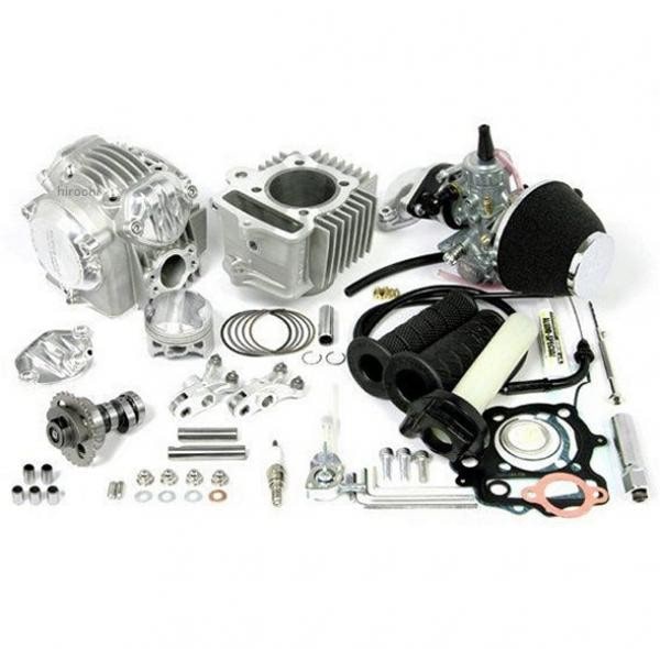 SP武川 スーパーヘッド4バルブ+Rヘッドコンボキット88cc98年-07年 ホンダ ゴリラ92年-97年 ホンダ モンキー99年-08年 ホンダ モンキー88ccボア径:57mmストローク量:41.4mm(ノーマルクランクシャフト使用)圧縮比:12.4:1付属カムシャフト:10/15D【セット内容】スーパーヘッド4V+Rキット、MIKUNI VM26キャブレター、ハイフローフィルター、ハイスロットルセット、スパークプラグ【スーパーヘッド4V+R(1カム4バルブ)の特徴】SP武川製スーパーヘッド+Rの大口径2バルブに比べ、インテークバルブとエキゾーストバルブを各2本ずつにすることで、バルブカーテン面積を更に拡大することが出来、大口径2バルブ以上に吸排気効率を高める事を可能としました。又、4バルブ化に伴う、センタープラグ化、バルブ挟み角、燃焼室形状、ポート形状のバランスを図り設計されたヘッド形状の為、高出力化を可能とし、スーパーヘッドの最大の特徴でもある高回転域での持続性のある出力特性を実現しています。1カム4バルブを採用することで可能な限り、軽量とコンパクト化を行うことが出来、同時にSOHCヘッド最強ヘッドとしての性能を凝縮しました。【新形状スーパーヘッド4バルブ+R本体】丸みのあるシリンダーヘッド形状はモンキースタイルによく似合い、車両のカスタムイメージを高めることが出来ます。又、バレル研磨が施されたダイカスト製の各ヘッドカバーがシリンダーヘッドを美しく演出します。