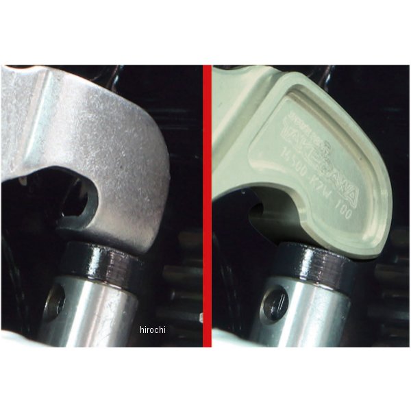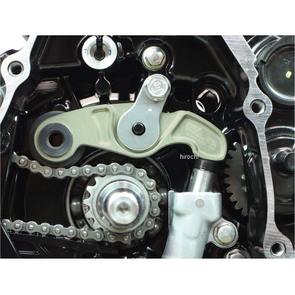 SP武川 スーパーカムチェーンテンショナー21年 ホンダ グロム GROM22年-26年 ホンダ クロスカブ11021年-25年 ホンダ グロム22年-26年 ホンダ スーパーカブ11022年-26年 ホンダ スーパーカブ110プロ22年-26年 ホンダ スーパーカブC12523年-26年 ホンダ ダックス12523年-26年 ホンダ ハンターカブ CT12521年-26年 ホンダ モンキー125【仕様説明】SP武川製テンショナーアームは強度の高い超々ジュラルミン材を精巧に削り出し、厚みを増やすことでアーム本体の強度を高め、更にプッシュロッドへの接地面積を増やしています。これによりプッシュロッド先端のゴムの陥没や破損を軽減し、プッシュロッドの寿命が大幅に向上します。アーム本体にはオイル穴を設けており、稼動部へオイルの潤滑を行います。アーム表面には硬質アルマイトを施しています。カムチェーンテンショナーローラー付属。【ノーマルテンショナーアームとSP武川製テンショナーアームの比較】ノーマルテンショナーアームは板材による成型加工の為、プッシュロッドへの接地面積が少なく、プッシュロッド先端のゴムが板厚の形に陥没します。又、ハイパワーエンジンにて長期使用するとノーマルテンショナーアームの変形が酷くなり、プッシュロッドヘッドを破損させることがあります。この場合、カムチェーンに適切なテンションがかからない為、エンジントラブルの原因となることがあります。SP武川製テンショナーアームは強度の高い超々ジュラルミン材を精巧に削り出し、厚みを増やすことでアーム本体の強度を高め、更にプッシュロッドへの接地面積を増やしています。これにより、テンショナーアームの強化だけでなく、プッシュロッド先端のゴムの陥没や破損を軽減することが出来、プッシュロッドの寿命が大幅に向上します。又、アーム本体にオイル穴を設けており、可動部へオイルの潤滑を行います。※カムチェーンテンショナープッシュロッドヘッドが磨耗・損傷している場合は純正の新品部品と交換してください。なお、他社にて販売されている硬質強化タイプのプッシュロッドヘッドはカムチェーンに高負荷を与えるために併用しないでください。※L.クランクケースカバーガスケットが別途必要です。取り付けには特殊工具のローターホルダー及びフライホイールプーラが必要です。