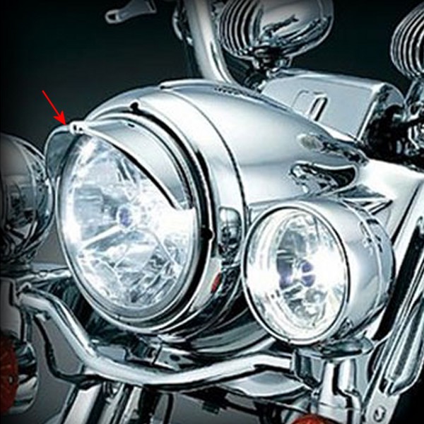 クリアキン Kuryakyn 7インチ ヘッドライトバイザー7インチヘッドライト装着車。(ただし、ダイナモデルは不適合)カラー:クローム【注意事項】相性によっては、トリムとヘッドライトとの間に、わずかなクリアランスが生じる場合がございます。【特長】クリアキンのヘッドライトバイザーです。ヘッドライトトリムの隙間に挟み込むタイプになります。