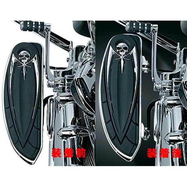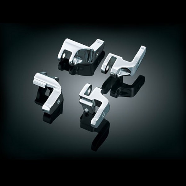 クリアキン Kuryakyn フットボード リロケーター ブラケット97年-16年のエレクトラグライド、ロードグライド、ロードキング、ストリートグライド(ただし、15年-16年FLHTKSE、FLTRUSE、FLHXSE除く)09年-13年のトライクモデルカラー:クローム【注意事項】クリアキン クルーズアームマーク(7914、7915、7844)との併用不可【特長】フットボードを斜め前方に1インチ移動させるブラケットキットです。
