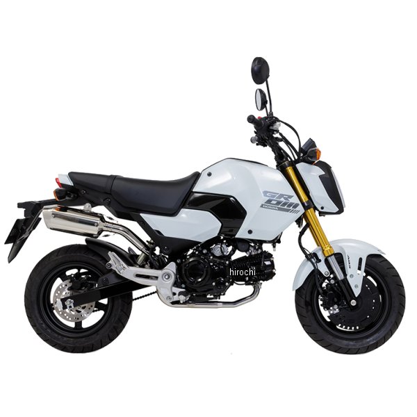 モリワキ フルエキゾースト MX21年以降 ホンダ グロム適合型式:2BJ-JC92 / 8BJ-JC92カラー:SUS(ステンレスポリッシュ)材質:パイプ/ステンレス・サイレンサー/ステンレス車検:政府認証排気ガス試験結果証明書:なし排気音量:近接 88dB/加速 79dB商品重量:2.3kg (STD3.3kg)オイル交換:〇オイルフィルター交換:〇※他社製品との同時装着は未確認のため保証対象外となります。※ホンダ純正アクセサリー「アンダーカウル(品番:08F75-K26-M50ZA)」と同時装着可。追加部品の必要はありません。【スタイリング】超小型のMXサイレンサーを採用し、車両との一体感にこだわり抜いたUPスタイルにレイアウト。レーシングGROMの開発データをストリート用にフィードバックしアグレッシブなスタイリングと高性能を両立しました。サイレンサーカバーには、”MORIWAKI”ロゴをレーザーマーカーで印字。SUSカバーではシンプルに、BP-χではブラックのカバーにゴールドのロゴが鮮やかに映ります。【性能】発進時からトップエンドまで滑らかに加速していく非常に扱いやすい特性です。ほぼ全域でSTDを上回るトルク&パワーを実現、特に中回転から高回転域では大きく上回る性能を達成。どこまでも走りたくなる軽快な走りをお楽しみいただけます。【サウンド】アイドリングは控えめな音量に抑えており回転を上げていくと、エンジンパワーを感じる低音の効いたサウンドで、ライディングがより楽しくなるような仕上がりになっています。