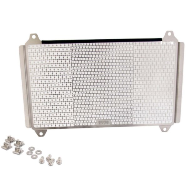 モリワキ ラジエターコア ガードキッド18年-24年 カワサキ Ninja 25018年-24年 カワサキ Ninja 40019年-24年 カワサキ Z25019年-24年 カワサキ Z400適合型式ニンジャ400/Z400:2BL-EX400G/ 8BL-EX400Lニンジャ250/Z250:2BK-EX250P/8BK-EX250Yカラー:シルバー ステンレスポリッシュ材質:ステンレス【仕様説明】フロントタイヤから巻き上げられる小石やタイヤカスからラジエターを守る「ラジエターコアガード」。コア部分の抜き形状は往年のモリワキアルミフレームに使われたサクラパイプの断面をモチーフにデザイン。ダメージの可能性が高いセンター部分を細かく、冷却効果の高い両サイドを粗めのパターンに仕上げました。材質は耐久性と耐食性をあわせもつSUS304ステンレスを採用し、ポリッシュ/ブラックの2色展開により様々なカスタムに合わせた選択が可能です。
