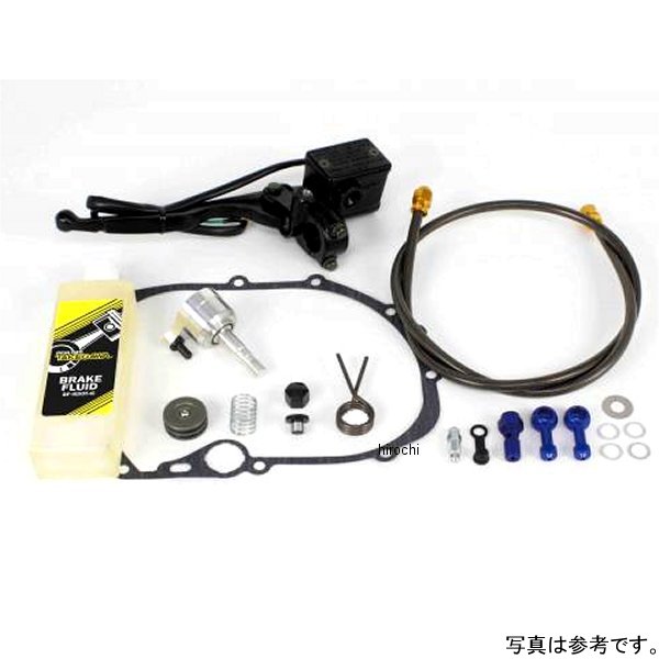SP武川 ハイドロクラッチコンバージョンキット ドライブギヤ無KSR110 (KL110A-000001-/KL110A-A04501-)KLX110 (LX110A-000001-)KLX110 (LX110A-A08133-)KSR110 (タイモデル) (JKAKL110CCDA00058-)KSR110 (タイモデル) (KL110CEA00001-)ギア無しハイドロクラッチコンバージョンキットKSR110、KLX110の遠心クラッチの部品を流用し、手軽にマニュアル化するキットです。マニュアルクラッチにすることにより、マシン本来のポテンシャルを楽しむことが出来、遠心クラッチに比べシフト操作が軽くなります。R.クランクケースカバーの内側に油圧クラッチレリーズシリンダー&ピストンを取付けます。シリンダー、ピストンはアルミ削り出し。クラッチマスター、ステンレスブレードホース付き。※遠心クラッチの分解が必要です。(スプリングの取り外し)※クラッチマスターシリンダーのミラーのネジ径は8mmです。※KLX110Lは取付け出来ません。※オイル窓は使用出来ません。