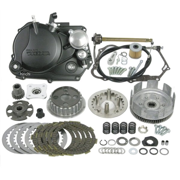SP武川 SPLクラッチ 6V ホンダ モンキー78年-84年 ホンダ ゴリラ78年-84年 ホンダ モンキーeステージやSステージのライトボアアップキット車に適した強化クラッチキットです。チューニングされたエンジンはノーマルクラッチでは十分な対応が出来ず滑りが生じエンジン出力をドライブ側に十分伝えることが出来ません。このキットはディスク枚数を3枚にすることで、伝達効率の向上を実現しています。このキットを取付けた場合、1次減速比がノーマルの4.312より3.722へ変更になりますので、ドライブスプロケットを約2T下げるかドリブンスプロケットを約4T上げるとクラッチ変更前の走行フィーリングを保てます。※注意事項組付けには特殊工具が必要になります。(ロックナットレンチ / ローターホルダー)。レギュラー、Rステージ、スーパーヘッド、DOHCヘッドなどの高出力エンジンには必ずスペシャルクラッチ又は乾式クラッチをご使用下さい。許容最高回転数は10000rpmです。