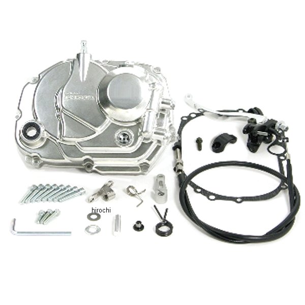 SP武川 クラッチカバーキット ワイヤータイプカワサキ KSR110カワサキ KLX110L※KLX110 LX110A-000001-は取付け出来ません。※この商品にはプライマリードライブギアが付属しておりません。現在、ハイドロクラッチコンバージョンキット(プライマリードライブギア付き)を装着されている方が対象となる商品です。ノーマル自動遠心式クラッチを手動マニュアルクラッチに変更することが出来ます。カバー本体はアルミニウムダイカスト製にバフ研磨後クリア塗装が施され、美しく仕上げられています。ノーマルクラッチカバーとは全く異なるカバー形状と表面処理により、エンジンにインパクトを与え、車両を美しく演出します。クラッチカバーにはSP武川ロゴ入り