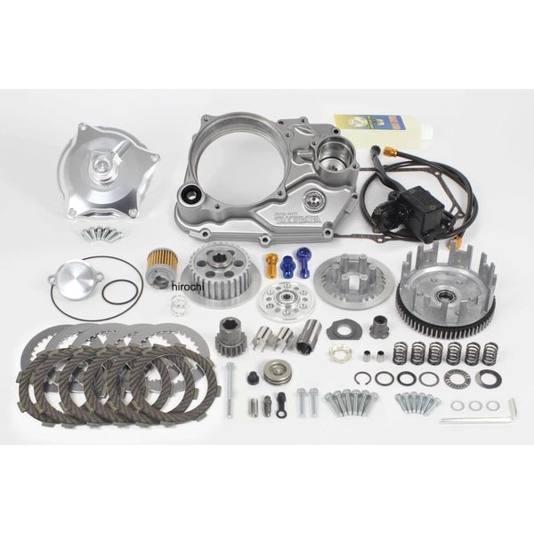 SP武川 スペシャルクラッチキット TYPE-R WET/油圧式/シルバー 6Vモンキー/ゴリラ(Z50J-1300017 ~1805927)12Vモンキー(Z50J-2000001~/AB27-1000001~1899999)12Vゴリラ(Z50J-2500001~/AB27-1000001~1899999)モンキー(FI)(AB27-1900001~) ・回転マス重量を軽減しつつ、6ディスク化によりクラッチ容量アップを実現します。・ノーマルメインシャフト用(ノーマルミッション用)・ノーマルメインシャフト用は車両からエンジンを降ろす必要が無く、ノーマルミッションのままでスペシャルクラッチを装着することが出来ます。このキットの取付け構造は特許を取得しております。・このキットは標準仕様(スリッパークラッチ無し)になります。・右クランクケースカバーにはアルミダイカスト製を採用。・カバー表面にはシルバー塗装が施されています。・湿式クラッチと乾式クラッチのどちらにも使用出来る右クランクケースカバー形状を採用。・スペシャルクラッチ(湿式)購入後も乾式クラッチへ仕様変更が出来ます。※仕様変更には、弊社指定パーツの別途購入が必要です。・アルミ削り出しクラッチカバー(油圧式)。クラッチカバーはアルミ材を精巧に削り出し、表面にシルバーアルマイトを施しております。又、クラッチカバー中央には“HYDRAULIC”ロゴが入っております。レリーズピストン径Φ33を採用。※ノーマルメインシャフト用(ノーマルミッション用)になります。※弊社製オイルクーラーを使用し、クラッチカバーにオイルホースを接続している場合はバンジョー、ホース長の変更が必要になります。※ノーマルマフラー、アップマフラーの同時装着は出来ません。※付属のクラッチマスターシリンダーを取付ける場合、ノーマルクラッチレバー&ホルダーを取外す必要がある為、弊社製コンビネーションスイッチの別途購入が必要になります。※Z50J-1300017 ~1600007の車両に取付ける場合、付属のクラッチマスターシリンダーがノーマルハンドルパイプと同時装着出来ない為、ハンドルパイプを交換する必要があります。