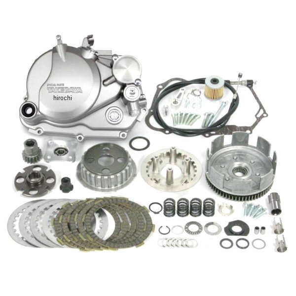 SP武川 スペシャルクラッチキット スリッパークラッチ/ダイカスト/シルバーカラー:シルバー対応車種6Vモンキー/ゴリラ Z50J-1300017 -180592712Vモンキー Z50J-2000001-/AB27-1000001-1899999モンキーFI AB27-1900001-12Vゴリラ Z50J-2500001-/AB27-1000001-1899999ノーマルメインシャフト ノーマルミッションを使用します。セット内容・ダイカストスペシャルクラッチカバー・ノーマルメインシャフト用スペシャルクラッチ(スリッパークラッチ仕様)・付属ケーブル長 モンキー/ゴリラ用:850mm※クラッチケーブルアダプター付属している為、クラッチレバーの別途購入の必要がなく、ノーマルレバーのままで、スペシャルクラッチ用クラッチケーブルの取り付けが可能になります。P武川特許取得構造によりエンジンの脱着やクランクケースの分解の必要が無く、ノーマルメインシャフトのままスペシャルクラッチにすることができます。右クランクケースカバーはアルミニウムダイカストを採用。表面には、シルバー塗装を施しています。クラッチタイプは、湿式仕様のワイヤー式軽くスムーズな操作のラック&ピニオン方式を採用。カバー一体式のクラッチケーブルレシーバーを採用。 クラッチレリーズアームは、アルミ材を精巧に削り出し、アルマイトを施しています。※Z50J-1300017 -1600007の車両に取付ける場合、付属のクラッチケーブルがノーマルクラッチホルダーに対応していない為、ハンドルパイプを交換し、SP武川製クラッチレバーとコンビネーションスイッチをご購入いただく必要があります。※SP武川製オイルクーラーを使用し、クラッチカバーにオイルホースを接続している場合は、バンジョー、ホース長の変更が必要になります。※ノーマルマフラーの同時装着はできません。※ノーマルメインシャフト(ノーマルミッション)以外の車両には取付けできません。