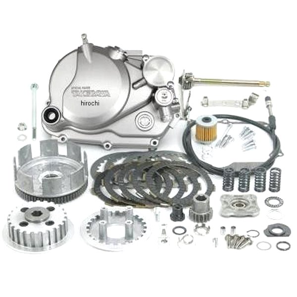 SP武川 スペシャルクラッチキット アルミダイカスト/シルバー塗装カラー:シルバー対応車種:12V DAX50 AB26-1000001-SP武川製WET対応クロスミッション装着車・付属ケーブル長:910mmSP武川製5速クロスミッション装着車を対象とするスペシャルクラッチキットです。右クランクケースカバーはアルミニウムダイカストを採用。表面には、シルバー塗装を施しています。キックスピンドルブラインドプラグが付属。クラッチタイプは、湿式仕様のワイヤー式軽くスムーズな操作のラック&ピニオン方式を採用。専用クラッチケーブルレシーバーを採用。 クラッチレリーズアームは、アルミ材を精巧に削り出し、アルマイトを施しています。※対象ミッション(SP武川製WET対応クロスミッション用)以外の車両には取付けできません。※ノーマルのマフラー、エアクリーナーケースは取付け出来ません。※マニュアルクラッチ化に伴いSP武川製クラッチレバーとコンビネーションスイッチを別途ご購入下さい。又、取り付けには配線加工が必要になります。