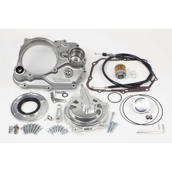 SP武川 スペシャルクラッチカバーキットTYPE-R DRY/ワイヤー式 6Vモンキー/ゴリラ(Z50J-1300017 ~1805927)12Vモンキー(Z50J-2000001~/AB27-1000001~1899999)12Vゴリラ(Z50J-2500001~/AB27-1000001~1899999)モンキー(FI)(AB27-1900001~) ・本製品の装着に伴い、スペシャルクラッチインナーキットTYPE-R(DRY)の同時装着が必要です。マスターシリンダーは付属しておりません。・兼用の右クランクケースカバーを採用。・右クランクケースカバーにはアルミダイカスト製を採用。・カバー表面はシルバー塗装が施されています。・湿式クラッチ、乾式クラッチのどちらにも使用出来る右クランクケースカバー形状を採用。・乾式クラッチ購入後もスペシャルクラッチ(湿式)へ仕様変更出来ます。※仕様変更はSP武川指定パーツの別途購入が必要です。・アルミ削り出しクラッチカバー(ワイヤー式)・カバーはアルミ削り出しクリアアルマイト仕上げ・軽くスムーズな操作のラック&ピニオン方式を採用。・冷却効果を高めるベンチレーションホール配置しております。・乾式特有の騒音が気になる方には、オプショナルパーツのラバーキャップを使用することで騒音を軽減することができます。※本製品の装着に伴い、スペシャルクラッチインナーキットTYPE-R(DRY)の同時装着が必要です。※インナーキット取り付けに伴い、SP武川製乾式クラッチ用5・6速クロスミッションの同時装着が必要になります。WEBカタログ参照又、モンキー キャブレター車とインジェクション車ではクロスミッションキットの品番が異なります。※SP武川製オイルクーラーを使用し、クラッチカバーにオイルホースを接続している場合はバンジョー、ホース長の変更が必要になります。※Z50J-1300017 ~1600007の車両に取付ける場合、付属のクラッチケーブルがノーマルクラッチホルダーに対応していない為、ハンドルパイプを交換し、SP武川製クラッチレバーとコンビネーションスイッチをご購入下さい。※ノーマルマフラー、アップタイプマフラーの同時装着は出来ません。※スペシャルクラッチカバーキット TYPE-R(17DRY/油圧式)にはクラッチマスターシリンダーが付属しておりません。
