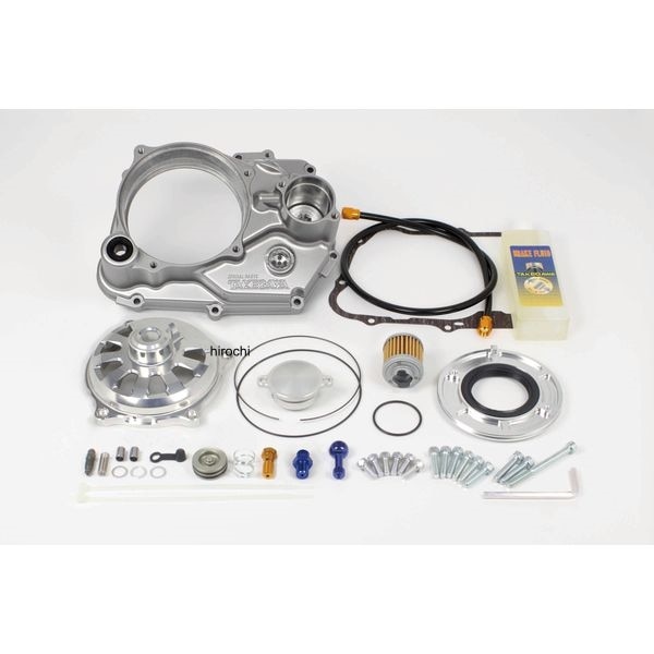 SP武川 スペシャルクラッチカバーキットTYPE-R DRY/油圧式 6Vモンキー/ゴリラ(Z50J-1300017 ~1805927)12Vモンキー(Z50J-2000001~/AB27-1000001~1899999)12Vゴリラ(Z50J-2500001~/AB27-1000001~1899999)モンキー(FI)(AB27-1900001~) ・本製品の装着に伴い、スペシャルクラッチインナーキットTYPE-R(DRY)の同時装着が必要です。マスターシリンダーは付属しておりません。・兼用の右クランクケースカバーを採用。・右クランクケースカバーにはアルミダイカスト製を採用。・カバー表面はシルバー塗装が施されています。・湿式クラッチ、乾式クラッチのどちらにも使用出来る右クランクケースカバー形状を採用。・乾式クラッチ購入後もスペシャルクラッチ(湿式)へ仕様変更出来ます。※仕様変更はSP武川指定パーツの別途購入が必要です。・アルミ削り出しクラッチカバー(油圧式)・カバーはアルミ削り出しクリアアルマイト仕上げ・ブリーダーバルブ部とホースフィッティング装着部に新形状を採用し、冷却効果を高めるベンチレーションホールを複数配置しています。・更にクラッチ操作の向上を図る為、レリーズピストン径を従来品Φ29.5からΦ33に拡大し、クラッチレバーの操作を軽くしています。・オプショナルパーツ:乾式クラッチ特有の騒音を緩和する防音ラバーキャップの装着が可能。※本製品の装着に伴い、スペシャルクラッチインナーキットTYPE-R(DRY)の同時装着が必要です。※インナーキット取り付けに伴い、SP武川製乾式クラッチ用5・6速クロスミッションの同時装着が必要になります。WEBカタログ参照又、モンキー キャブレター車とインジェクション車ではクロスミッションキットの品番が異なります。※SP武川製オイルクーラーを使用し、クラッチカバーにオイルホースを接続している場合はバンジョー、ホース長の変更が必要になります。※Z50J-1300017 ~1600007の車両に取付ける場合、付属のクラッチケーブルがノーマルクラッチホルダーに対応していない為、ハンドルパイプを交換し、SP武川製クラッチレバーとコンビネーションスイッチをご購入下さい。※ノーマルマフラー、アップタイプマフラーの同時装着は出来ません。※スペシャルクラッチカバーキット TYPE-R(17DRY/油圧式)にはクラッチマスターシリンダーが付属しておりません。