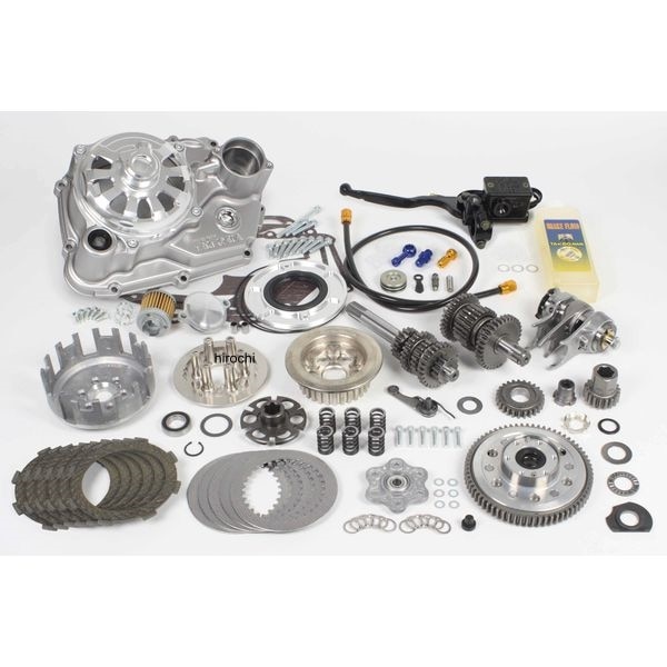 SP武川 乾式クラッチ 油圧/スリッパー/マスター付TAF5速 ST 6Vモンキー/ゴリラ(Z50J-1300017 ~1805927)12Vモンキー(Z50J-2000001~/AB27-1000001~1899999)12Vゴリラ(Z50J-2500001~/AB27-1000001~1899999)・本製品は、スペシャルクラッチ TYPE-R(DRY/油圧式)にTAF5速クロスミッションキットが付属したお買い得セットになります。・兼用の右クランクケースカバーを採用。・右クランクケースカバーにはアルミダイカスト製を採用。・カバー表面はシルバー塗装が施されています。・湿式クラッチ、乾式クラッチのどちらにも使用出来る右クランクケースカバー形状を採用。・乾式クラッチ購入後もスペシャルクラッチ(湿式)へ仕様変更出来ます。※仕様変更はSP武川指定パーツの別途購入が必要です。・アルミ削り出しクラッチカバー(油圧式)・カバーはアルミ削り出しクリアアルマイト仕上げ・ブリーダーバルブ部とホースフィッティング装着部に新形状を採用し、冷却効果を高めるベンチレーションホールを複数配置しています。・更にクラッチ操作の向上を図る為、レリーズピストン径を従来品Φ29.5からΦ33に拡大し、クラッチレバーの操作を軽くしています。・オプショナルパーツ:乾式クラッチ特有の騒音を緩和する防音ラバーキャップの装着が可能。※ノーマルマフラー、アップタイプマフラーの同時装着は出来ません。