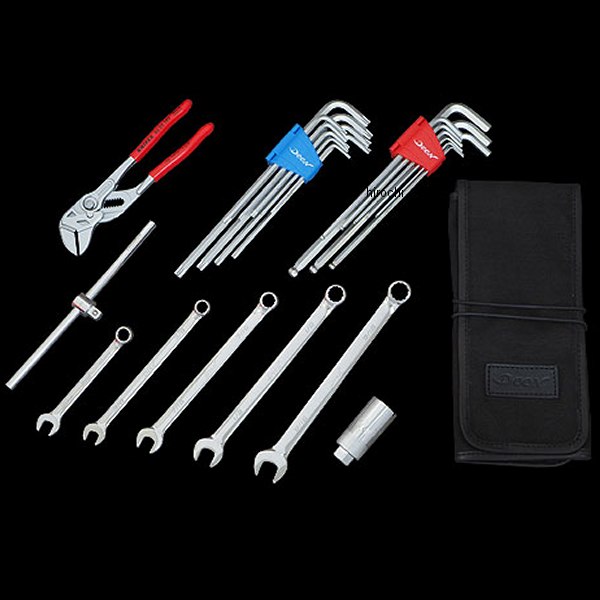 ディーン DEEN インチ 積載ツールセット EVO/SHV99年以前 エボリューション等13/16インチスパークプラグソケット車両カラー:ツールバッグ本体:ブラック【セット内容】3/8SQスライドハンドルバー×13/8SQスパークプラグソケット×1コンビネーションレンチ×5L型ヘックスレンチ×9L型トルクスレンチ×9KNIPEXプライヤーレンチ×1レザーロールケース×1【特長】Deen製の高精度ツールをハーレー用に厳選して詰め合わせた車載セット。コンパクトなロールケースの中には、ボールポイントL型ヘックスと、L型トルクスレンチセット一式、スパークプラグソケットにスライドハンドル。厳選サイズのコンビネーションレンチの中には10mmも含めてバッテリの端子にも対応。それ以外のサイズへは、KNIPEX製のプライヤーレンチがカバーする、スペシャル車載ツールとなっております。正しい使用用途、およびトルク管理のもとご使用下さい。ミリサイズなど、近似値ボルトへの代用や、打撃使用は破損の原因ととなります。