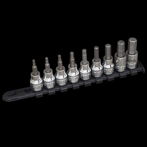 ディーン DEEN 3/8SQ ヘキサゴンインチビットソケットサイズ:サイズ(in):1/8・9/64・5/32・3/16・7/32・1/4・5/16・3/8・7/16【セット内容】ヘックスソケット×9個 ホルダー×1個【特長】Deen製の3/8差込角のヘキサゴンビットソケットセットです。ヘックスビットなどでも親しまれてます。3/8ドライブの工具がセット出来るのでよじれにも強く、高トルクのアレンボルトにも適しており、1/8~7/16までのセットで、附属のホルダーで整理されて工具箱にも備えやすい状態です。ラチェットやスピンナー、トルクレンチなど差し替えて使用出来る便利なビットです。正しい使用用途、およびトルク管理のもとご使用下さい。ミリサイズなど、近似値ボルトへの代用や、インパクトドライバーでの打撃使用は破損の原因になります。