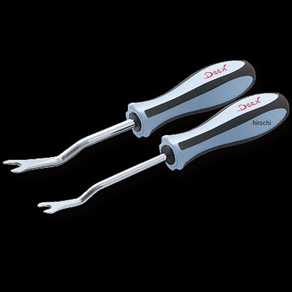 ディーン DEEN クリップリムーバーセットサイズ:工具サイズ:6mm、10mm【セット内容】クリップリムーバー×2本【特長】Deen製のクリップリムーバー2本セットです。長い年月と驚くほどの試作を重ねて、日本人の手に馴染む形と使用感を追求しました。Deenドライバーシリーズと同じグリップを採用してます。外装作業やカプラ外しなどに重宝致します。正しい使用用途、およびトルク管理のもとご使用下さい。近似値ボルトへの代用や、打撃使用は破損の原因になります。