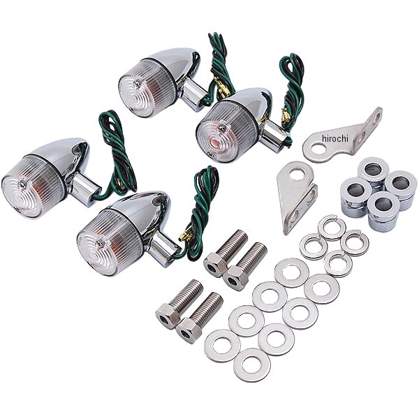 ポッシュ POSH クラシカル砲弾タイプ ウインカーセット クロームボディ/クリアレンズ87年-98年 ヤマハ TW20098年-01年 ヤマハ TW200E02年-07年 ヤマハ TW225E※TW225に取り付けの場合は別売りのリアウインカーステーベース(品番:023095-06)が必要になります。ステム装着タイプ。角ライト車不可。取り付けに必要なパーツが全て揃ったボルトオンキット。フロント/リアのバルブもセットした1台分のセット新規金型で制作され仕上げ質感を向上、亜鉛ダイキャストボディの採用によりカラー:クロームの美しさを追求、従来品のアルミバフ仕上げとは異なった輝きをお確かめ下さい。ブラックは焼付け塗装となります。