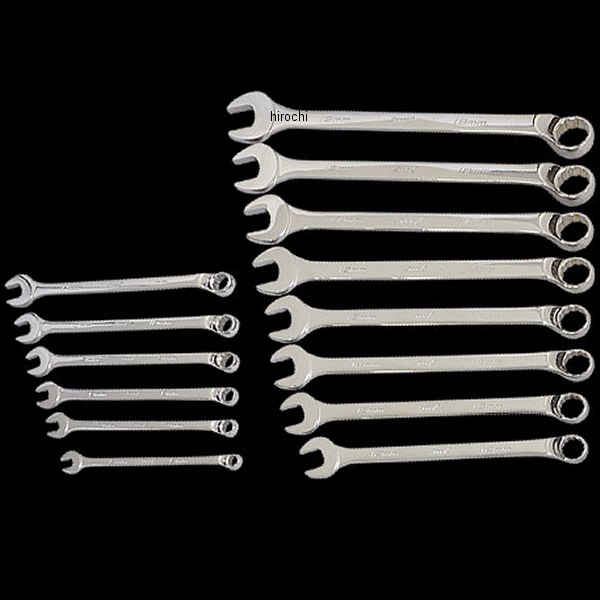ディーン DEEN DIN型コンビネーションレンチサイズ:6・7・8・9・10・11・12・13・14・15・16・17・18・19mmカラー:クローム【セット内容】コビネーションレンチ×14【特長】6ミリから19ミリまで1ミリ刻みの全14pcセットです。通常のレンチより急な立ち上がりの75度オフセットレンチは、奥まったところでもうまく障害物をよけて回せます。正しい使用用途、およびトルク管理のもとご使用下さい。近似値ボルトへの代用や、打撃使用は破損の原因になります。