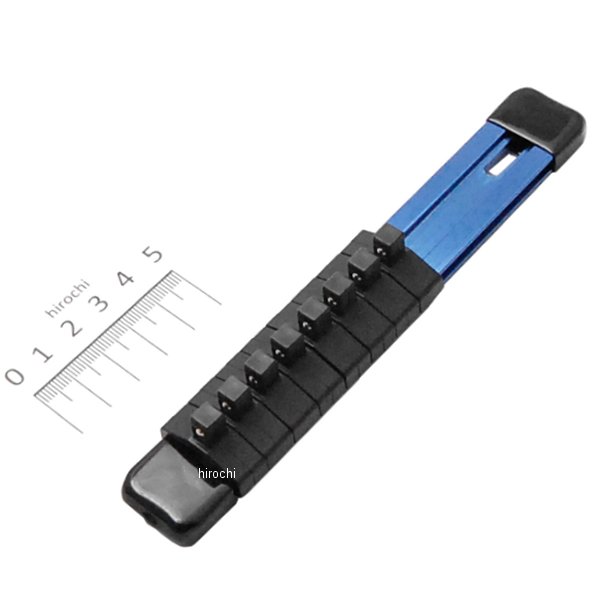 ディーン DEEN 1/4SQ アルミレール ソケットホルダーサイズ:1/4SQ 全長:150mm クリップ数:8【セット内容】ソケットホルダー×1【特長】DEENの新型ソケットセットに採用されているアルミレールのソケットホルダーが遂に単体で発売されました。ブルーのアルマイト加工が施されたロゴ入りレールも高級感抜群ですが、何といってもクリップに内蔵された新開発の「クイックボール」がとにかく秀逸。従来のスチール製クリップのようにグリグリむしり取るのではなく、垂直に引っ張るだけで簡単に取り外し出来ます。正しい使用用途、およびトルク管理のもとご使用下さい。近似値ボルトへの代用や、打撃使用は破損の原因になります。