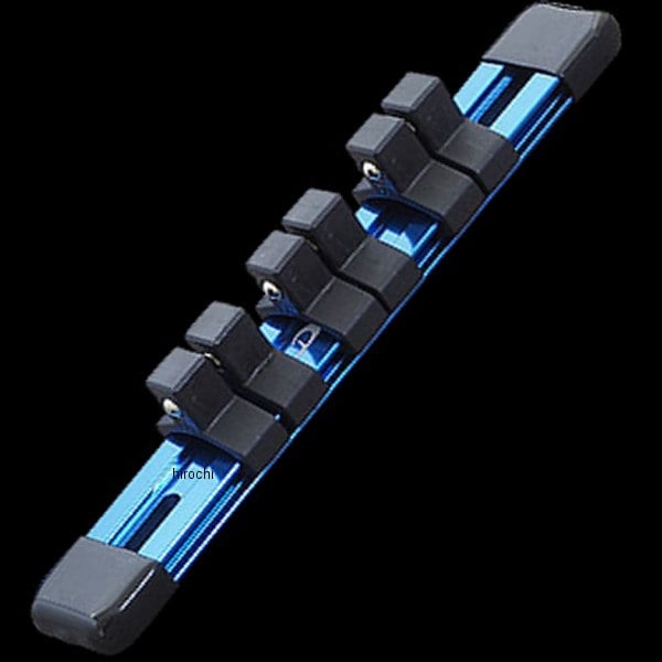 ディーン DEEN 3/8SQ アルミレール ソケットホルダーサイズ:3/8SQ 全長:150mm クリップ数:6【セット内容】ソケットホルダー×1【特長】DEENの新型ソケットセットに採用されているアルミレールのソケットホルダーが遂に単体で発売されました。ブルーのアルマイト加工が施されたロゴ入りレールも高級感抜群ですが、何といってもクリップに内蔵された新開発の「クイックボール」がとにかく秀逸。従来のスチール製クリップのようにグリグリむしり取るのではなく、垂直に引っ張るだけで簡単に取り外し出来ます。正しい使用用途、およびトルク管理のもとご使用下さい。近似値ボルトへの代用や、打撃使用は破損の原因になります。