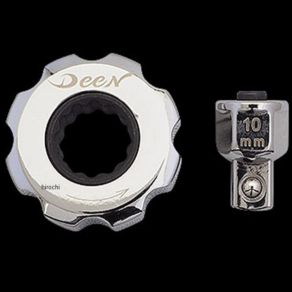 ディーン DEEN 1/4SQ ラチェットリングサイズ:全長:27mmヘッド部高さ:18.2mmギア部:10mmギア数:72枚 付属アダプター:1/4sq(DNGA1410)【セット内容】ラチェットリングセット×1【特長】DEEN製の指先で回せるコンパクトサイズのラチェットです。一般的なラチェットハンドルを使用できないような狭い場所での作業に活躍します。 付属のラチェットめがねアダプターの差し込む向きを変えることで回転方向の切り替えができます。 別売りのビット用アダプターと組み合わせることで、 ビットを差してラチェットドライバーとしてもお使いいただけます。アダプターを装着せずに、10mmのラチェットめがねレンチとしても使用可能です。正しい使用用途、およびトルク管理のもとご使用下さい。近似値ボルトへの代用や、打撃使用は破損の原因になります。