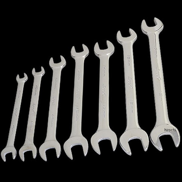 ディーン DEEN オープンエンドスパナカラー:クローム【セット内容】8mm-10mm×110mm-12mm×112mm-14mm×113mm-15mm×114mm-17mm×116mm-18mm×117mm-19mm×1【特長】Deen製のコンビネーションレンチセットです。ミラークロームフィニッシュが美しい同シリーズは、収納整列時の美しさだけではなく、作業現場においてもしっかりとした耐久強度も併せ持つ仕様です。両側でサイズの異なる15度アングルのオープンエンドとなっており、工具を持ち替える事無く作業に取り組めます。正しい使用用途、およびトルク管理のもとご使用下さい。近似値ボルトへの代用や、打撃使用は破損の原因になります。