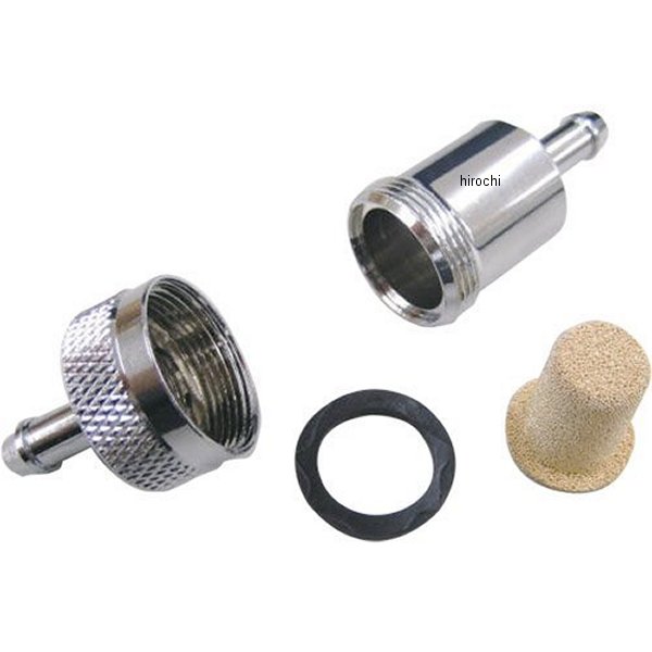 マッドマックス MAD MAX ガソリンフィルターカラー:クロームメッキ仕上げホース差込口外径:8mm内径:5mm全長:76.5mm(内フィルター部本体23mm)分解、内部洗浄可能なアルミ製ガソリンフィルターです。