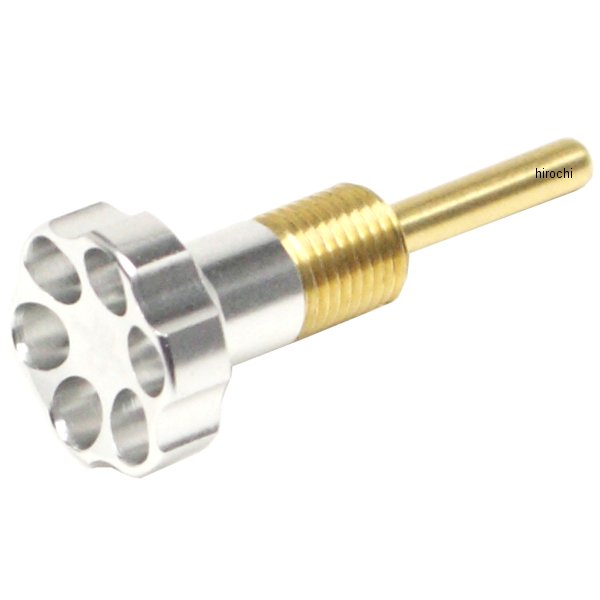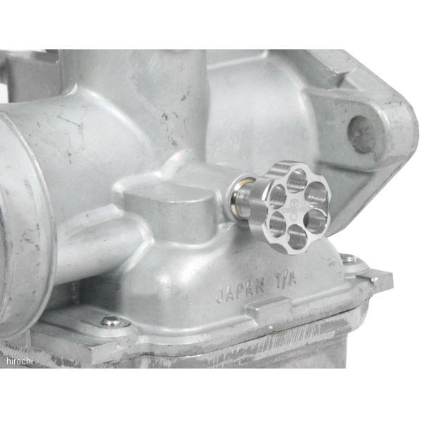アイドルアジャストスクリューです。 汎用カラー:シルバー 対象キャブレター:MIKUNI VM22 ※指定キャブレター以外には取付け出来ません。キャブレターのドレスアップに最適なアルミ削り出しアジャストスクリューです。 ノーマルからSP武川製アイドルアジャストスクリューに変更することで調整時の操作性が飛躍的に向上します。 又、アルミ削り出しアルマイト仕上げの美しいダイヤル部分がキャブレター本体をドレスアップ出来、 車両のカスタムイメージを高めます。 ダイヤル部分はアルミ削り出しカラーアルマイト仕上げ。 ダイヤル部分中央には、SP武川オリジナルピストンロゴがレーザーマーキングされています。 スクリュー部分はノーマルスクリュー同様の耐久性に優れた真鍮を採用。 ※武川製キャブレターのみ取り付け可能となります。