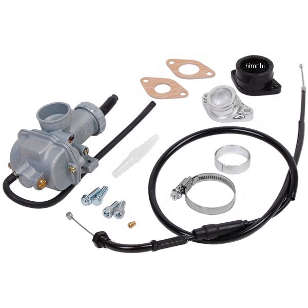 DENI 18 ビックキャブレターキットです。【適合車種】 ・Ape50(AC16-1000001?1599999) ・XR50 Motard(AD14-1000001?) ・CB50J(CB50J-1000011?1127783) ・CB50SB(AC02-1100006?1107894) ・CB50SA(AC02-1000007?1016876) ※エイプ50FI車は除く・サイズ:18Φ ・吸入方向: 右後方吸入 ・適応エンジン: Sステージ ・ノーマルスロットル使用 ・ノーマルエアクリーナーボックス使用可能 ※スロットル全開までの角度が少な過ぎる為、ハイスロットルの使用は出来ません。 ※スーパーヘッドとの同時装着は出来ません。 ・組込みメインジェット#92、スロージェット#35 付属メインジェット#95 ・弊社製ライトボアアップに最適なキャブレターです。 ・性能面では低中回転域が扱いやすく、KEIHIN PC18キャブレターと同等のエンジン性能を引出します。 ・キャブレター単品(汎用)とモンキー、CRF、ダックス50、マグナ50、エイプ50、XR50モタード、TT-R50Eの各車種専用のマニホールドが付属した各種キットをご用意しました。