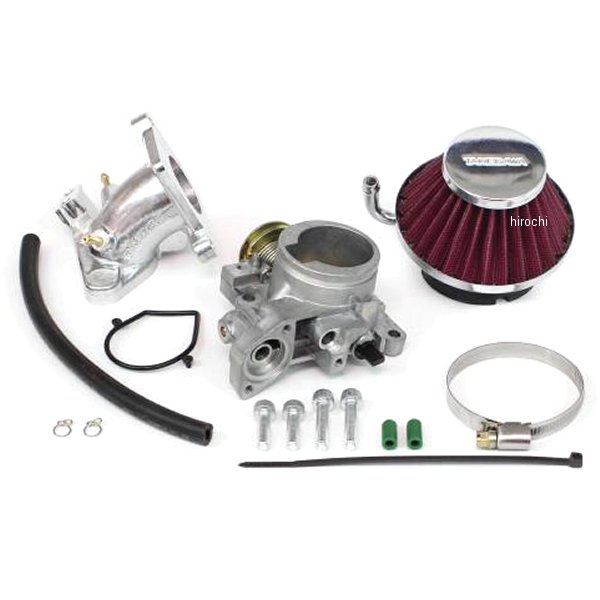 SP武川 ビッグスロットルボディーキット φ34 ノーマルシリンダーヘッド用ホンダ GROM(JC92-1000001~1099999)SP武川製FIコン TYPE-e(インジェクションコントローラー)と同時装着することで、出力性能が向上する ビッグスロットルボディーキット。本製品はノーマルシリンダーヘッドに対応するSP武川オリジナルのビッグスロットルボディーです。SP武川オリジナルのインテークマニホールドが付属している為、カウルや配線の加工は一切必要無く、純正車両にあるノーマルマニホールド、ノーマルスロットルボディーと交換するだけで、簡単に取り付けできます。又、キットには、吸入効果に優れたエアフィルターが付属し、SP武川製FIコン TYPE-eと同時装着を行うことで、ノーマルシリンダーヘッドの性能を最大限に引出し、ノーマルエンジンであっても出力アップが可能になります。エアフィルター本体にはブローバイユニオンがついている為、ブローバイホースに接続できます。純正車両(ノーマルエンジン/ノーマルマフラー)に、ビッグスロットルボディーを装着した場合でも、SP武川製FIコン TYPE-e(インジェクションコントローラー)の同時装着が必要になります。又、SP武川製ノーマルシリンダーヘッド用エンジンパーツ(スポーツカムシャフト/ハイコンプピストン/Sステージボアアップキット)に本製品を同時装着することで、高回転までストレス無く回るエンジン特性になり、更なる出力アップが可能になります。※本製品を装着する場合、必ずFIコン TYPE-e(インジェクションコントローラー)の同時装着が必要になります。SP武川製エンジンパーツに合わせ、セッティングしたデータを複数内蔵しておりますのでエンジン仕様に合わせてパソコン又はスマートフォンを用いて手軽にセッティングデータの選択、変更、修正を行えます。SP武川製FIコン TYPE-eに内蔵されたMAP以外のエンジン仕様の場合、内蔵MAPデータを元に、再セッティングを行う必要があります。予めご了承ください。