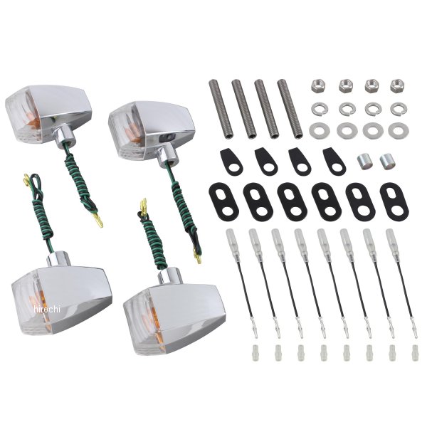 ポッシュ POSH ウインカーキット ZRタイプ シングル球仕様84年-93年 カワサキ GPZ900R91年-03年 カワサキ GPZ900Rカラー:メッキボディ/クリアレンズレンズタイプ:クリスタルカットウインカー本体素材:樹脂製レンズ素材:ポリカーボネート付属電球:フロント(S球)12V23W、リア(S球)12V23W【セット内容】・ウインカー本体S球×4個・M10×75スタッドボルト×4本・M10ナット/ワッシャー/Sワッシャー各4個・GPZテーベース×4枚・GPZゴムラバー×2枚・GPZウインカーカラー×2個・リアステーベース×4枚・カワサキ変換コード×8本【仕様説明】ZRタイプ ハイグレードなミドルサイズウインカーです。耐久性を重視した樹脂製ボディに、レンズにポリカーボネートを採用。ウインカーステーはねじ込み式で、見た目もスッキリ、後付け感もありません。一台分に必要なパーツを全てパッケージング、配線加工不要のボルトオン設計。ウインカー本体、レンズ、ソケット、ステーベースは国内生産。スダッドボルト、ナット、ワッシャー類は全てステンレス製でハイクオリティな仕上がりになっています。※専用ステーベース・変換コード付き。