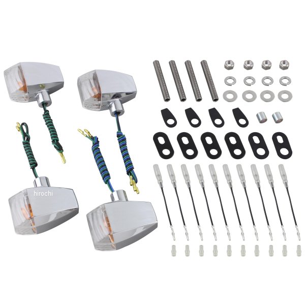 ポッシュ POSH ウインカーキット ZRタイプ ダブル球仕様91年-02年 カワサキ GPZ900Rカラー:メッキボディ/クリアレンズレンズタイプ:クリスタルカットウインカー本体素材:樹脂製レンズ素材:ポリカーボネート付属電球:フロント(W球)12V23/8W、リア(S球)12V23W【セット内容】・ウインカー本体W球×2個・ウインカー本体S球×2個・M10×75スタッドボルト×4本・M10ナット/ワッシャー/Sワッシャー各4個・GPZテーベース×4枚・GPZゴムラバー×2枚・GPZウインカーカラー×2個・リアステーベース×4枚・カワサキ変換コード×10本【仕様説明】ZRタイプ ハイグレードなミドルサイズウインカーです。耐久性を重視した樹脂製ボディに、レンズにポリカーボネートを採用。ウインカーステーはねじ込み式で、見た目もスッキリ、後付け感もありません。一台分に必要なパーツを全てパッケージング、配線加工不要のボルトオン設計。ウインカー本体、レンズ、ソケット、ステーベースは国内生産。スダッドボルト、ナット、ワッシャー類は全てステンレス製でハイクオリティな仕上がりになっています。※専用ステーベース・変換コード付き。