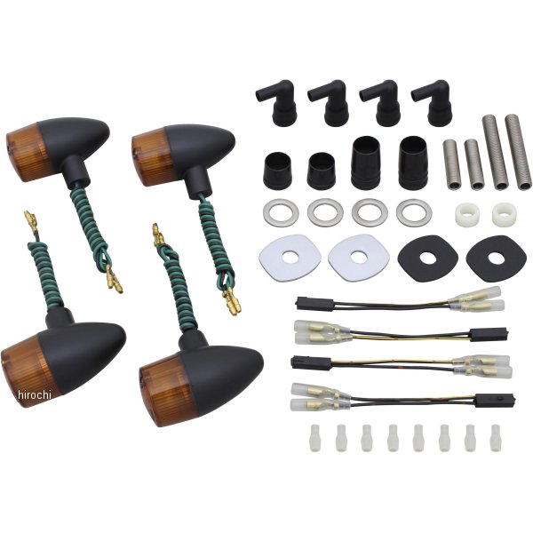 ポッシュ POSH クラシカル 砲弾タイプウインカーキット20年-23年 カワサキ W800ボディカラー:ブラックレンズカラー:オレンジ【セット内容】ウインカー本体×4個M10X40スダッドボルト×2本M10X65スダッドボルト×2本防水キャップ×4個延長ステー5mm×2個延長ステー20mm×2個スペーサーカラー×2個変換カプラーコード×4セットウインカーステーベース×4枚特寸平ワッシャー×4枚【仕様説明】・付属電球:フロント(S球)12v21w/リア(S球)12v21w・専用ステーベース/変換カプラーコード付き