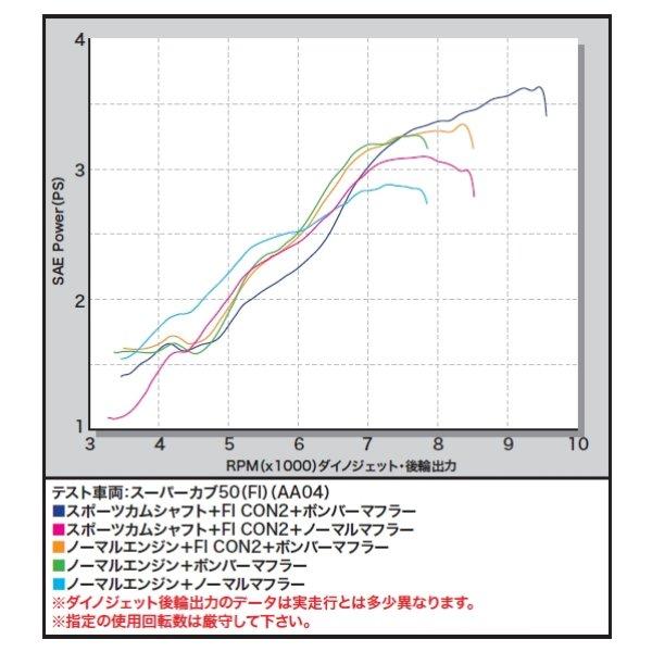FI CON2(インジェクションコントローラー)です。12年-17年 ホンダ スーパーカブ50●コンパクトボディながらTAKEGAWA製エンジンパーツに合わせてセッティング済の3次元燃料マップを内蔵し、各種センサーからの信号を元に高速演算を行い、エンジン状況に合わせて最適な燃料を噴射します。●更にノーマルECUのレブリミットを超える高回転まで使用する事が可能となり、TAKEGAWAカムシャフトを使用の場合では、約9500rpmにノーマルカムシャフトを使用の場合では約8500rpmへと引き上げます。●基本マップはカムシャフト、マフラーの違いで設定。基本マップからの燃料増減やリミッターの回転数設定はロータリースイッチを回すだけで簡単に変更することが出来ます。※スーパーカブ50(AA01)・スーパーカブ50 PROは取付け出来ません。