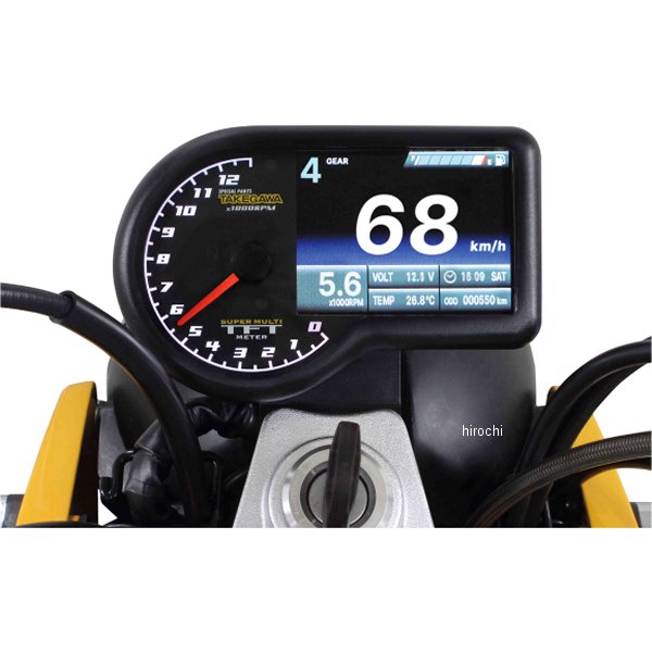 SP武川 スーパーマルチTFTメーター19年-24年 ホンダ モンキー125【仕様説明】速度、回転数、ギアポジション、温度計、燃料計、時刻、バッテリー電圧表示やタイヤ外径補正、パワーテスト機能等、非常に多くの機能を搭載したマルチメーターです。視認性に優れた指針式タコメーターとTFT液晶によるデジタル表示を採用。モンキー125用製品構成:専用サブハーネス、専用ステーセットが付属。メーター固定部にはメーターへの振動を和らげるラバーマウントを採用しています。【注意事項】H.I.D.や他社製LEDヘッドライト、フォグランプ類との同時装着は出来ません。バラスト/インバーター(電圧変換装置)からデジタル回路に悪影響を与える高電圧ノイズが出る物があり、製品故障や動作不良の原因になります。ギアポジションの設定に関して ギアポジションの設定にはスピード信号とエンジン回転信号の両方がスーパーマルチTFT メーターに入力される必要があります。その為、実走行による自動読み込み作業が必要になります。市街地では信号機や交通量が多く危険の為、ギアポジションの設定は行わないで下さい。走行の際は見通しの良い道路を選択し、周囲の道路状況を確認した上で、注意して行って下さい。