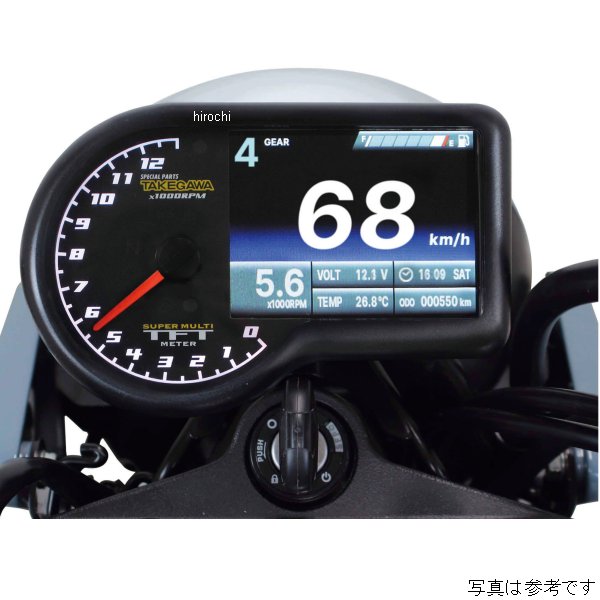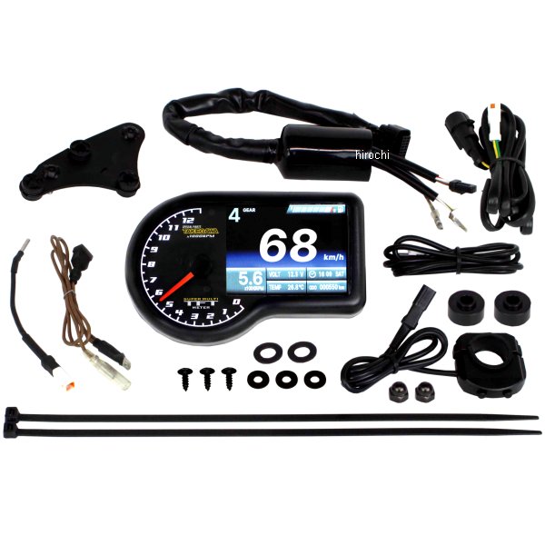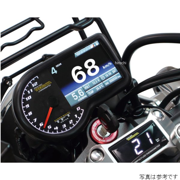 SP武川 スーパーマルチTFTメーター 23年-25年 ホンダ ダックス125【仕様説明】速度、回転数、ギアポジション、温度計、燃料計、時刻、バッテリー電圧表示やタイヤ外径補正、パワーテスト機能等、非常に多くの機能を搭載したマルチメーターです。視認性に優れた指針式タコメーターとTFT液晶によるデジタル表示を採用。ダックス125用製品構成:専用サブハーネス、専用ステーセットが付属。メーター固定部にはメーターへの振動を和らげるラバーマウントを採用しています。【機能】■スピードメーター:0~360km/hタイヤ外周設定(設定範囲:300~2500mm 設定単位:1mm)速度警告灯(設定範囲:30~360km/h 設定単位:1km/h)最高速度記録(表示範囲:0~360km/h 設定単位:1km/h)■指針式タコメーター:0~13000rpm回転数警告灯(設定範囲:1000~13000rpm 設定単位:100rpm)■デジタルタコメーター:0~20000rpm回転数警告灯(設定範囲:1000~20000rpm 設定単位:100rpm)点火設定(設定範囲:0.5・1~24 設定範囲:Hi Act・Lo Act)■西暦/月日/曜日設定を行うことでキーON時のオープニング画面に表示。曜日は西暦と月日を設定した際、自動で入力。■オドメーター:0~999999km(表示単位:1km 範囲を超えると0に戻る)トータル走行距離ユーザーオド設定(始点距離任意入力)■トリップメーターA、B:0~9999.9km(表示単位:0.1km 範囲を超えると0に戻る)外部スイッチ操作により、トリップメーターBへ表示切替え■オイル交換時期警告入力した走行距離は、走行することで自動で減少します。メンテナンス距離(通知モード)(設定範囲:500~16000km 設定単位:100km)■ギアポジション(表示内容:全ギア(9まで)表示、全ギア非表示)学習モードによるギア数登録機能■時計/曜日(設定範囲:12時間、又は24時間)曜日は西暦と月日を設定した際、自動で入力。■電圧計(表示範囲:8~18V)電圧警告灯(設定範囲8~18V 設定単位:0.1V)■温度計(表示範囲:0~250℃)別途SP武川製ドレンボルトをご購入頂く事で、ドレンボルト部での温度計測が可能。温度警告灯(設定範囲:60~250℃)最高温度記録(設定範囲:0~250℃)■燃料計(表示範囲:6段階)フューエルセンサー抵抗値プリセット 100Ω 250Ω 270Ω 390Ω 510Ω 1200Ωユーザー抵抗値設定 抵抗値範囲:0~1500Ω燃料警告灯■パワーテスト機能目標速度記録(Target Speed)目標距離記録(Target Distance)最高速度記録(Top Speed)各記録はレコード表示されます。最高レコードは一番上に表示され、No.2以下は計測順に表示します。記録はリセットが可能です。目標速度/距離設定は機能設定にて、指定数値を設定します。■インジケーターランプ警告灯・ターンランプ・ハイビームランプニュートラルランプ・エンジン警告灯オイルチェックランプ・ABSランプ■バックライトDay/Nightモード液晶画面 AUTO切り替え機能輝度調整機能照明色の切り替え機能照明色:白、赤、橙、緑、青、黄Dayモードは指針式タコメーター目盛りのみ変更が可能Nightモードは指針式タコメーター目盛りとメイン液晶のグラデーション部分の変更が可能■外部スイッチメーターの操作や機能設定は、すべてメーターに付属の外部スイッチを使用。(オプション機能)■空燃比計(表示範囲:12.1~17.5)別途SP武川製O2センサー、O2センサーボスが必要になります。O2センサーボスの取付け方法:エキゾーストパイプに穴開け加工を行い、O2センサーボスを溶接加工にて固定する必要があります。温度計と空燃比計の同時表示はできません。装着するセンサーにより、機能表示の切り替えが出来ます。※H.I.D.や他社製LEDヘッドライト、フォグランプ類との同時装着は出来ません。※バラスト/インバーター(電圧変換装置)からデジタル回路に悪影響を与える高電圧ノイズが出る物があり、製品故障や動作不良の原因になります。※ギアポジションの設定にはスピード信号とエンジン回転信号の両方がスーパーマルチTFTメーターに入力される必要があります。その為、実走行による自動読み込み作業が必要になります。市街地では信号機や交通量が多く危険の為、ギアポジションの設定は行わないで下さい。※走行の際は見通しの良い道路を選択し、周囲の道路状況を確認した上で、注意して行って下さい。※ギヤポジション表示は速度と回転数を元に表示切替を行っています。停止時は、ギヤチェンジを操作しても表示が切り替わりません。