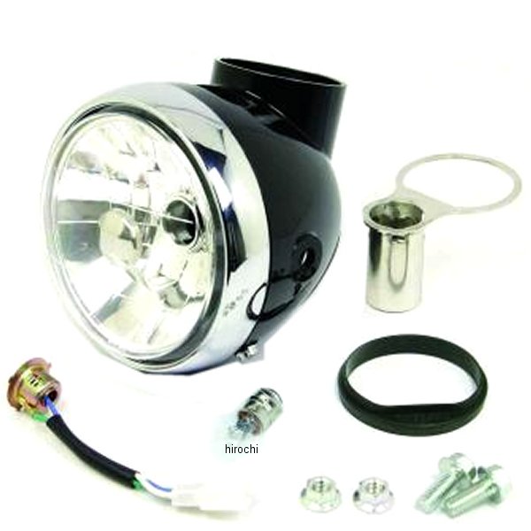 SP武川 28-Dマルチリフレクターヘッドライト汎用ブリティッシュスタイルをイメージにノーマルヘッドライトよりコンパクトに設計され、埋込み式メーターの取付けを可能とする小型ヘッドライトです。ヘッドライト本体は、マルチリフレクタ-ヘッドライトユニットにスーパーホワイトハロゲンバルブを採用したハイグレードな仕様になっております。取付け幅128mmのバイクに取付け出来る汎用タイプです。6Vバルブを別途ご購入いただく事で6V車にも使用する事が出来ます。モンキー系メインスイッチ用ステンレス製ステー付属。